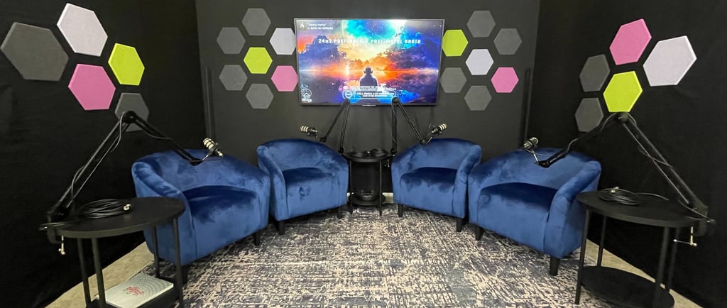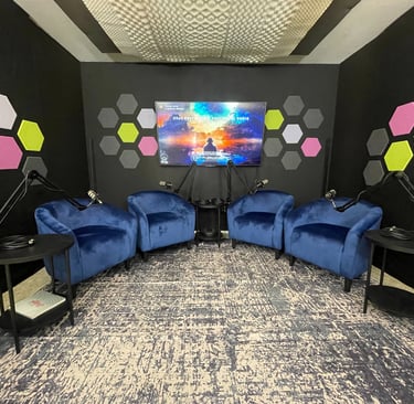 Make your voice heard with our soundproof podcast studio. We provide broadcast-quality microphones, audio engineering support, and comfortable seating for both solo shows and panel discussions.